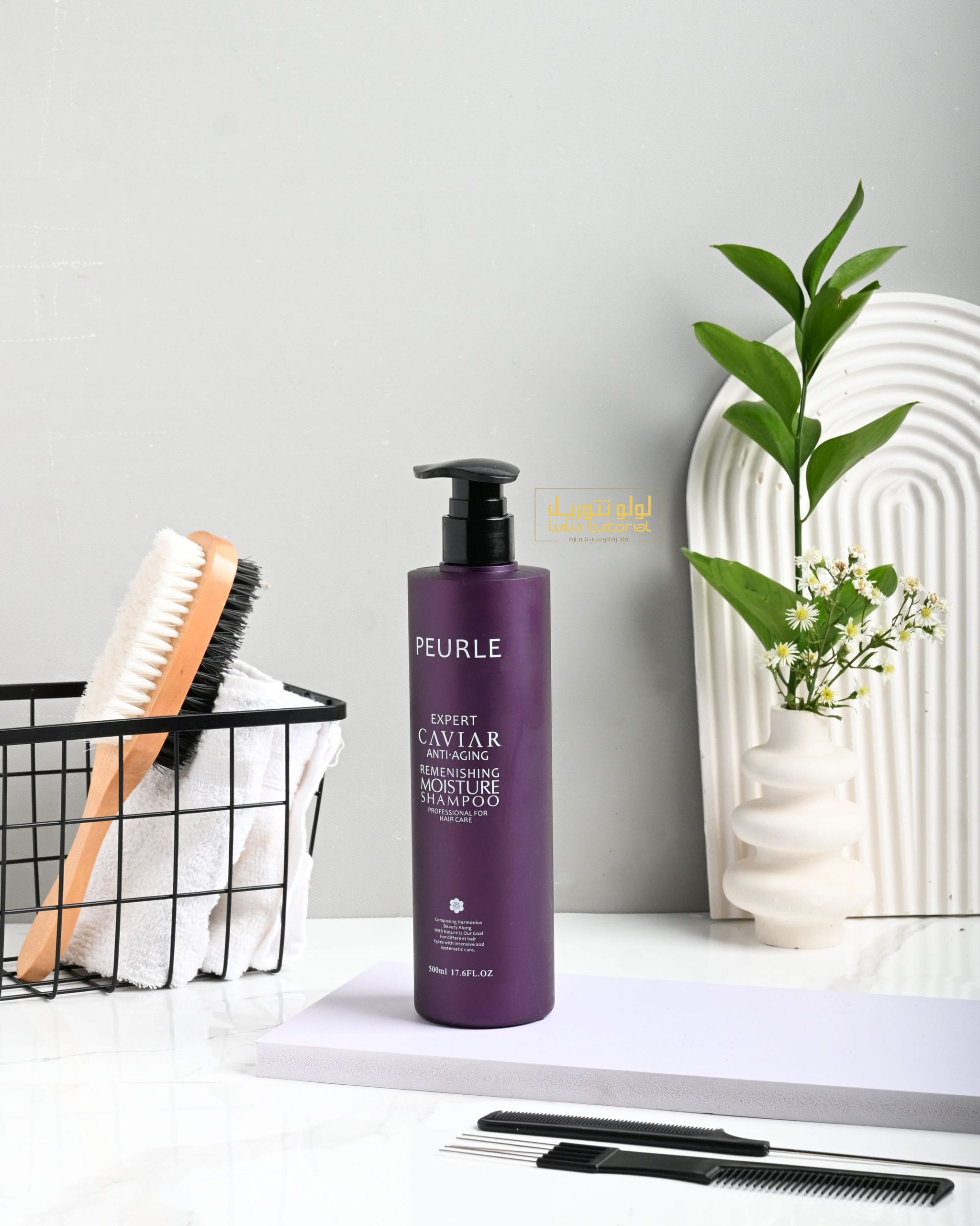 شامبو الكافيار ،من فوائده يفرد الشعر ويمنحه الملمس الناعم لأحتوائه على خصائص مضادة للتجعد وايضا يحسن صحة الشعر من الجذور الى الاطراف .